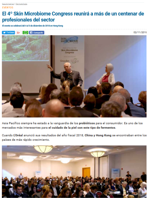 The November edition of BeautyMed.es features a great summary of the Skin Microbiome Congress series, and a snapshot of what's to come at the 4th edition, taking place in Hong Kong, December 2019.